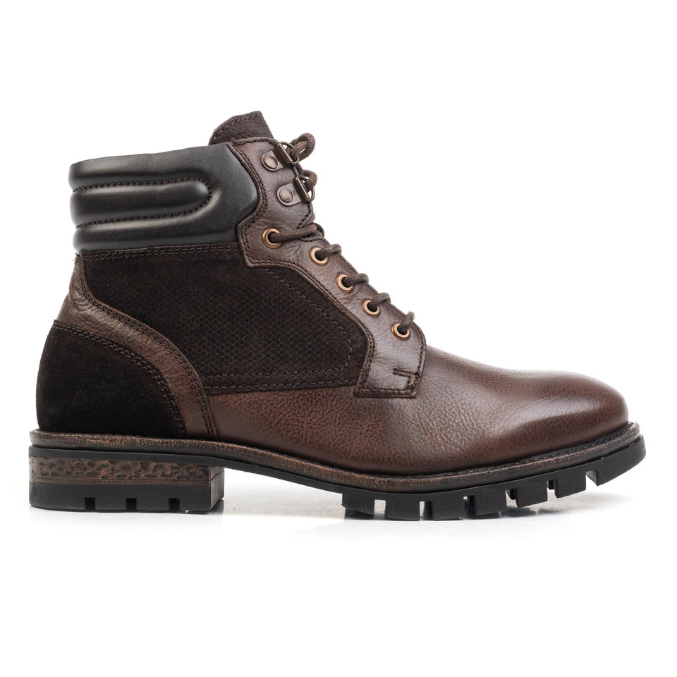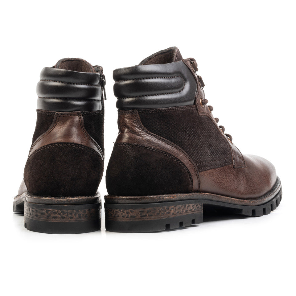 Az ARLO LACE BOOT egy robusztus és sokoldalú modell, amelyet olyan férfiak számára terveztek, akik értékelik a tartósságot és az autentikus stílust. Velúr felületű természetes bőrből készült, ez a modell texturált és modern megjelenést kínál, tökéletes a hideg évszakra.
