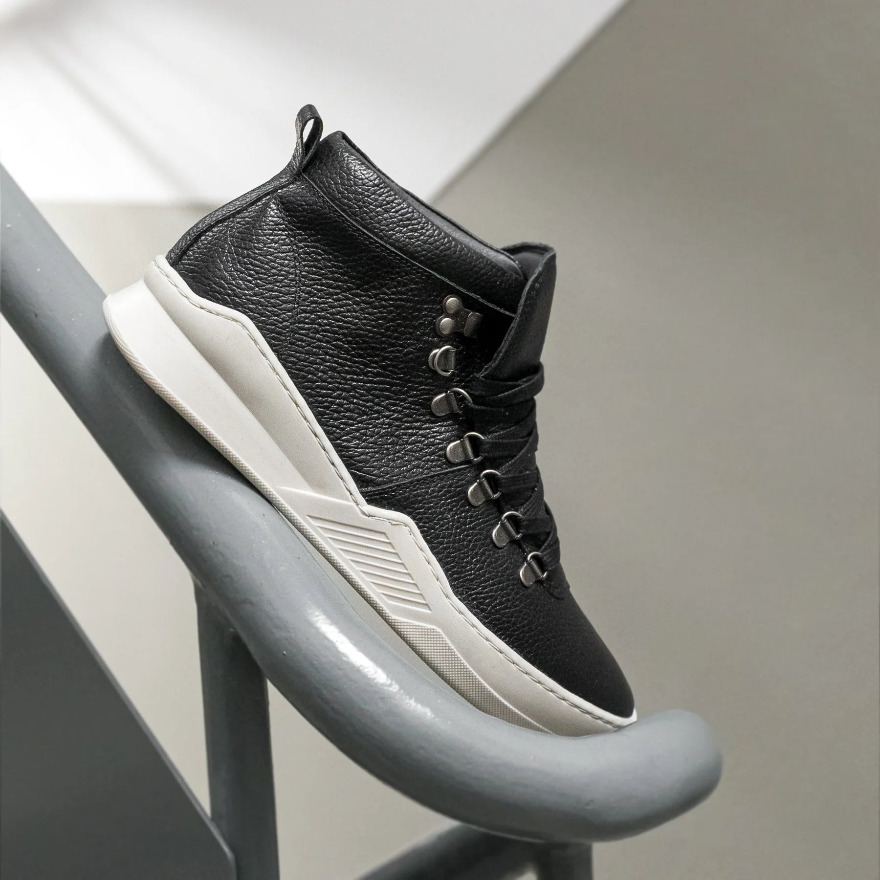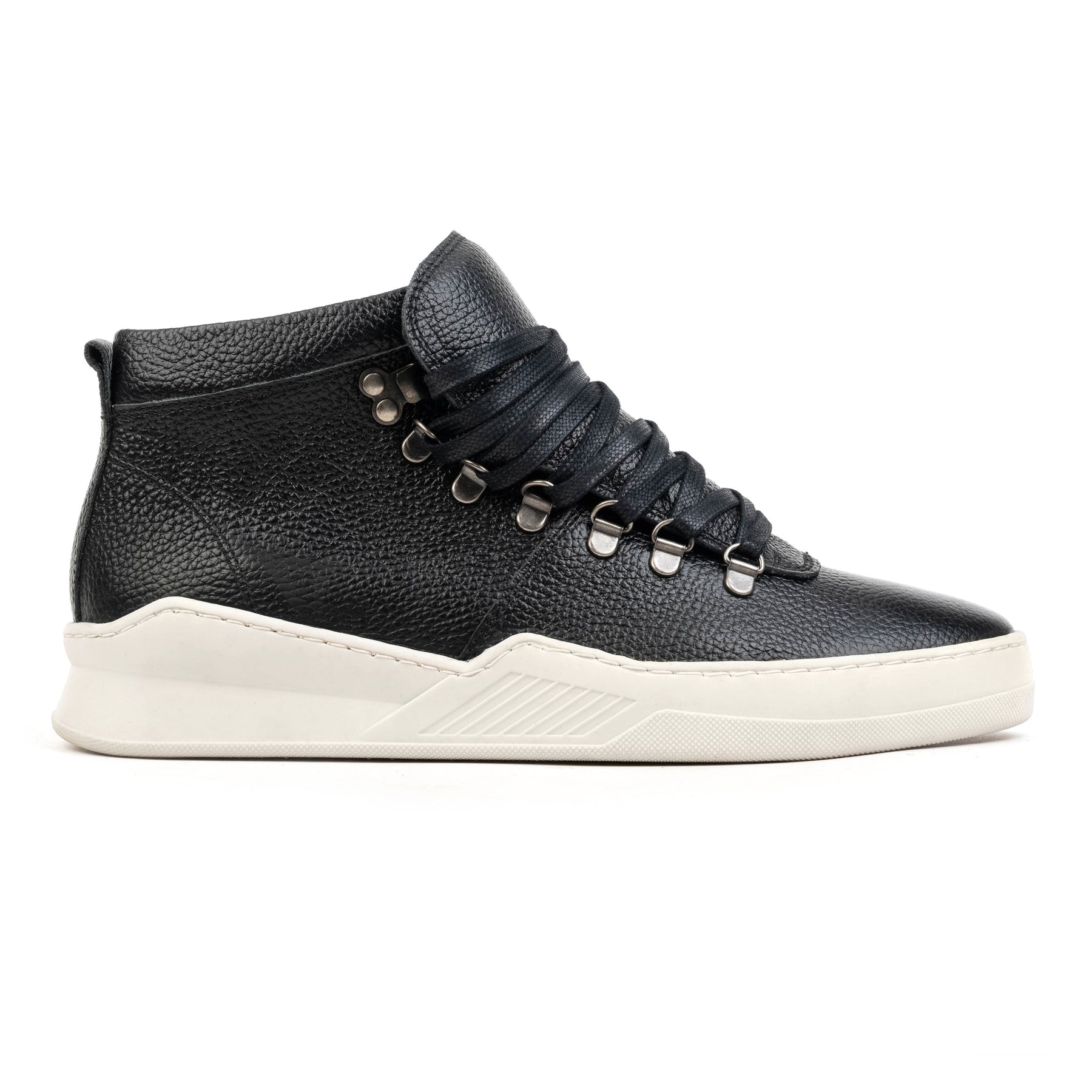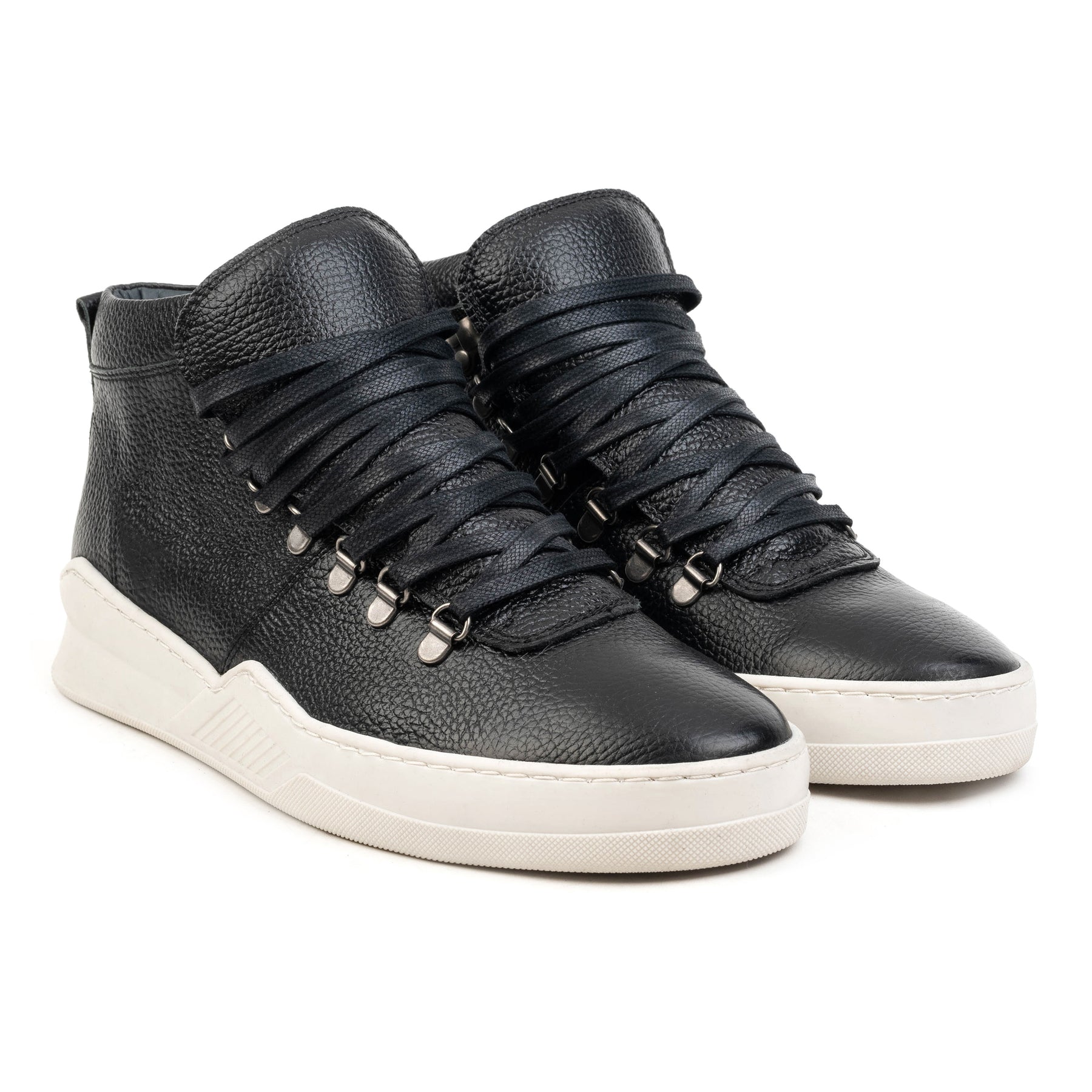A lapos, viaszos fűzők rozsdamentes és ellenálló D-gyűrűkön keresztül húzódnak, biztosítva a láb jó tartását járás közben, és egyértelmű üzenetet közvetítve a termék minőségéről és tartósságáról.