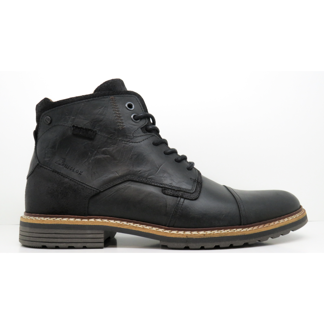 A Bufflox Josue boot Fekete bakancs tökéletes választás azoknak a férfiaknak, akik modern stílusra vágynak, kényelemmel és tartóssággal párosítva. Minőségi természetes bőrből készültek, ellenállást és elegáns megjelenést biztosítva, mindennapi használatra alkalmasan.
