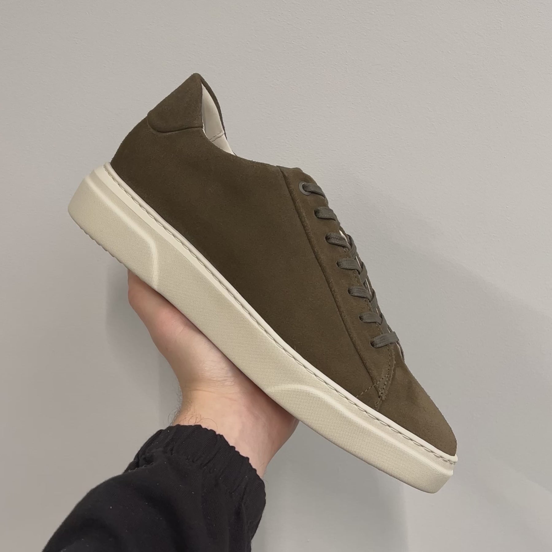 • Felsőrésze prémium minőségű olíva velúr bőrből készült