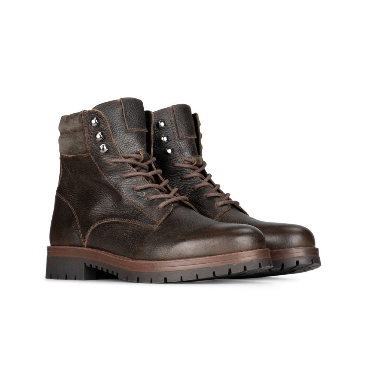A sötétbarna, természetes bőrből készült Mario Lace Up Boot ideális választás a hideg évszakokra, tökéletes egyensúlyt teremtve a klasszikus stílus és a funkcionalitás között. A fűzős design robusztus és maszkulin megjelenést kölcsönöz, amely alkalmi és smart-casual viselethez egyaránt illik.