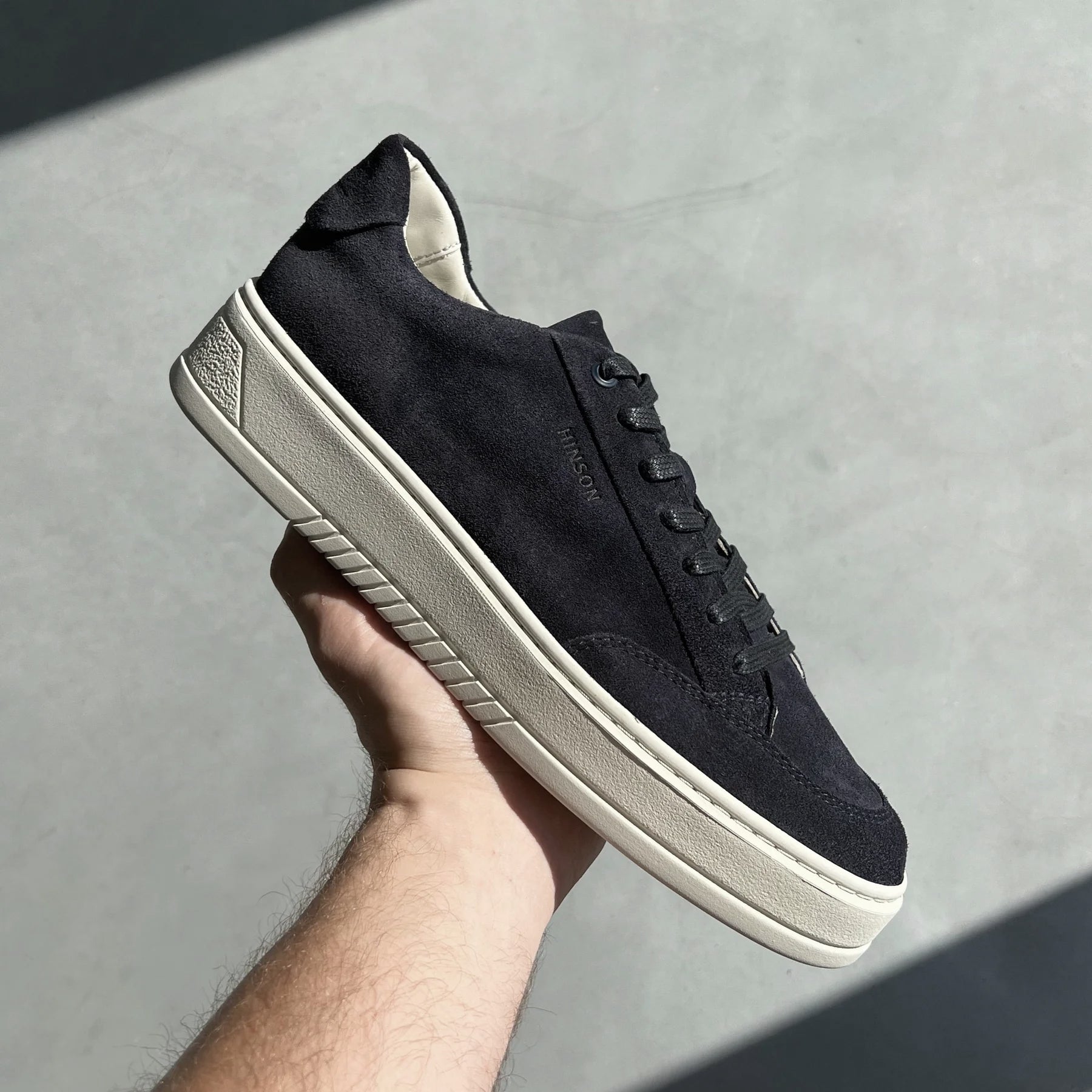 A Hinson Miller Retro sneaker egy modern modell, amelyet a klasszikus teniszcipő inspirált, minimalista és kifinomult designnal újragondolva. A letisztult vonalak és az egyszerűsített konstrukció a „no stitch” koncepciót tükrözi, kortárs és sokoldalú megjelenést biztosítva.