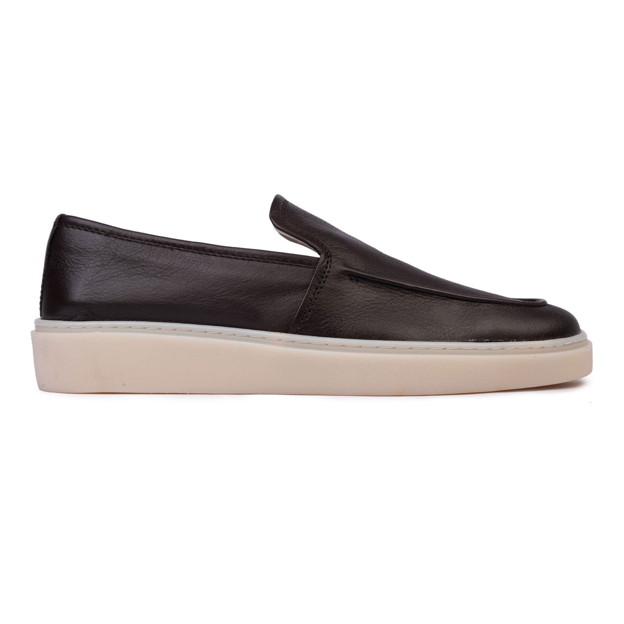 A sötétbarna színű, minőségi bőrből készült loafer kifinomult, sokoldalú megjelenést és kiváló tartósságot biztosít. A sötétbarna árnyalat egy csipetnyi meleg eleganciát kölcsönöz, könnyen beilleszthető a mindennapi ruhatárba vagy kifinomultabb öltözékekbe is.