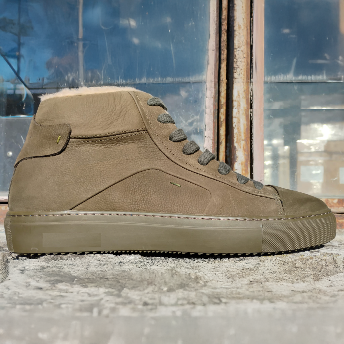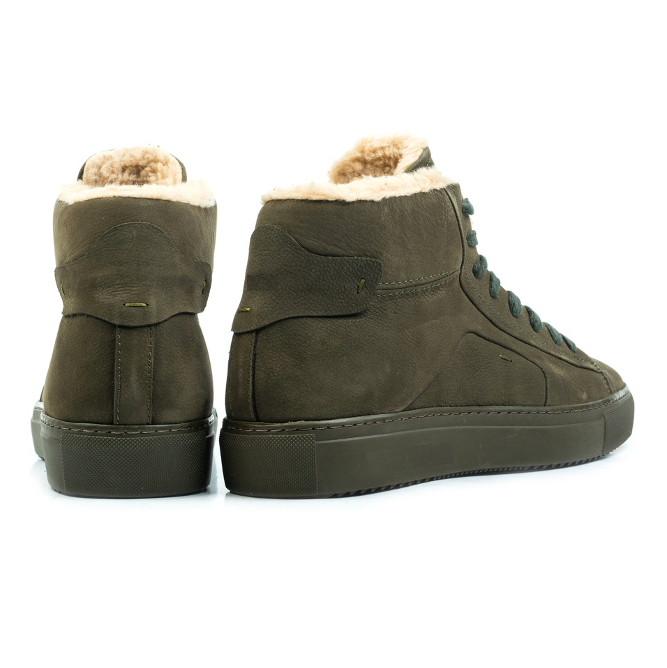 A mid-cut szabás megtámasztja a bokát és kiegészíti a modern dizájnt, könnyen integrálható alkalmi vagy elegáns-alkalmi öltözékekbe. Az army árnyalat egyéniséget ad, és tökéletesen illik a városi szettekhez.