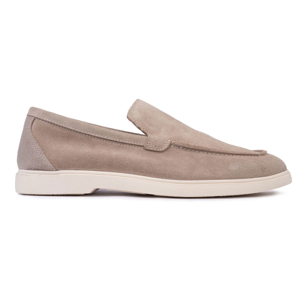 A kiváló minőségű, meleg bézs színű velúrbőrből készült loafer kifinomult, sokoldalú megjelenést és kiváló tartósságot biztosít. A bézs árnyalat semleges eleganciát kölcsönöz, így könnyen beilleszthető a mindennapi ruhatárba vagy kifinomultabb öltözékekbe.