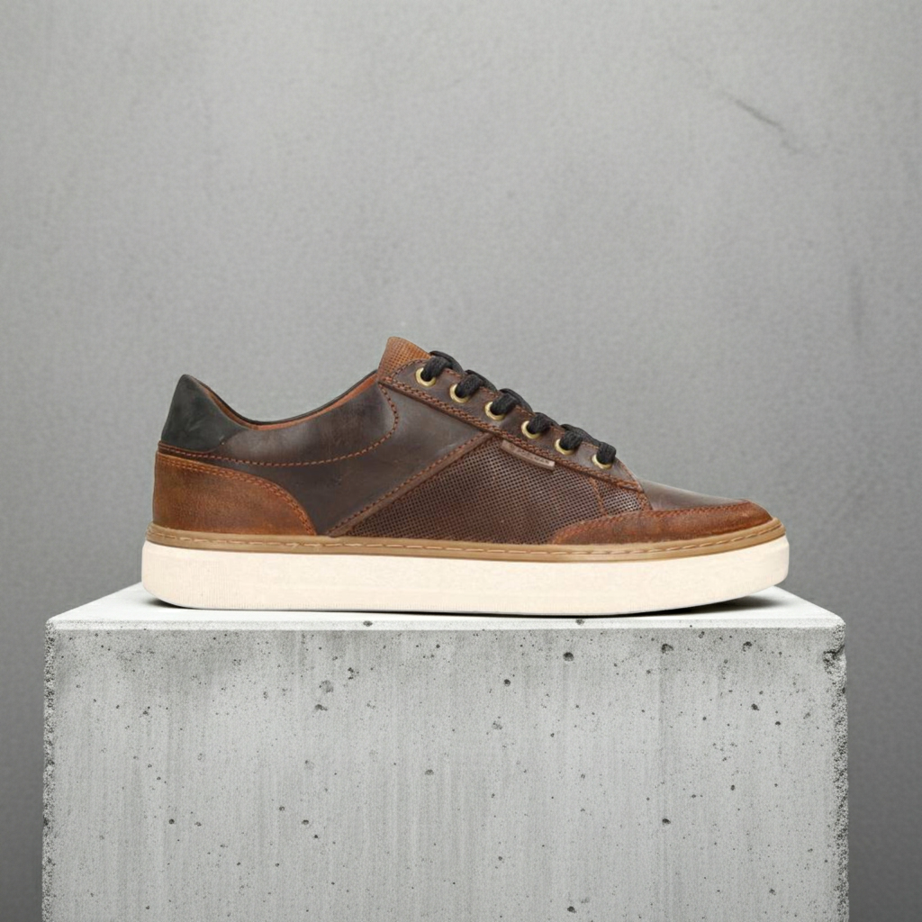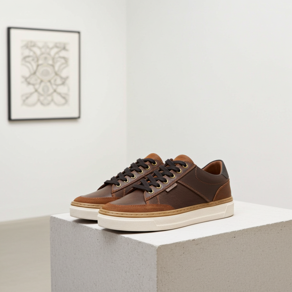 A Philos barna valódi bőr sneaker egy modern, lezser modell, amely alkalmas mindennapi viseletre és városi összeállításokhoz. Az egyszerű design és a barna szín sokoldalú megjelenést biztosít, könnyen beilleszthető a különböző ruhakombinációkba.