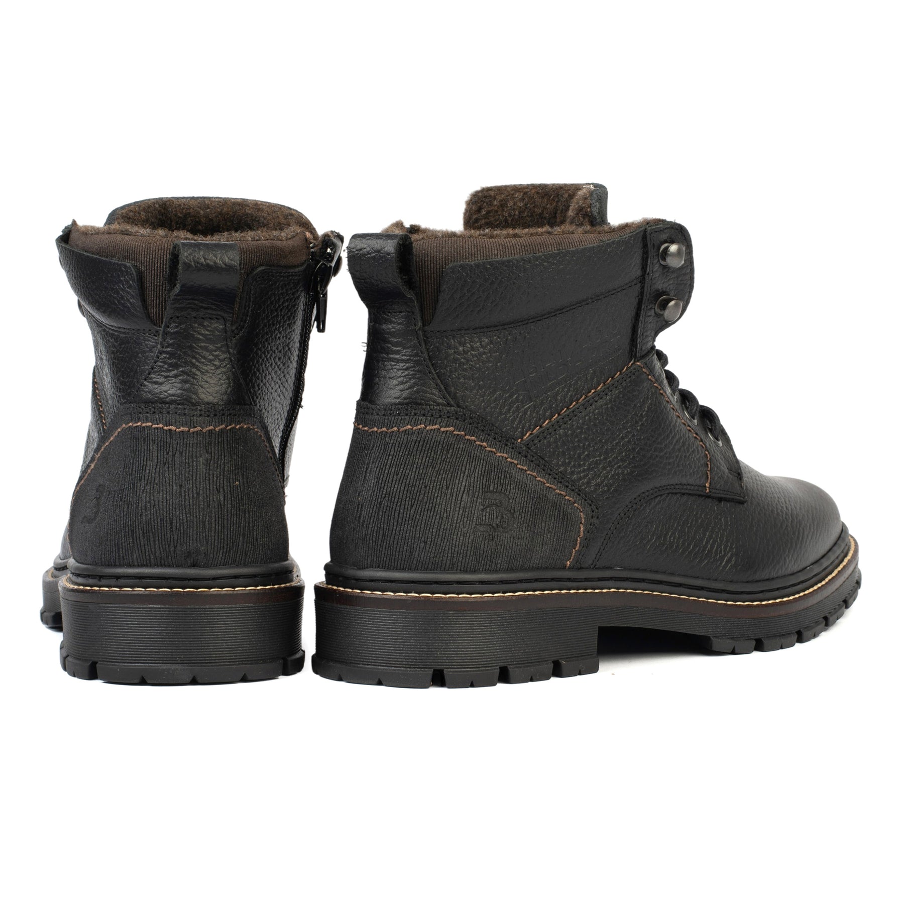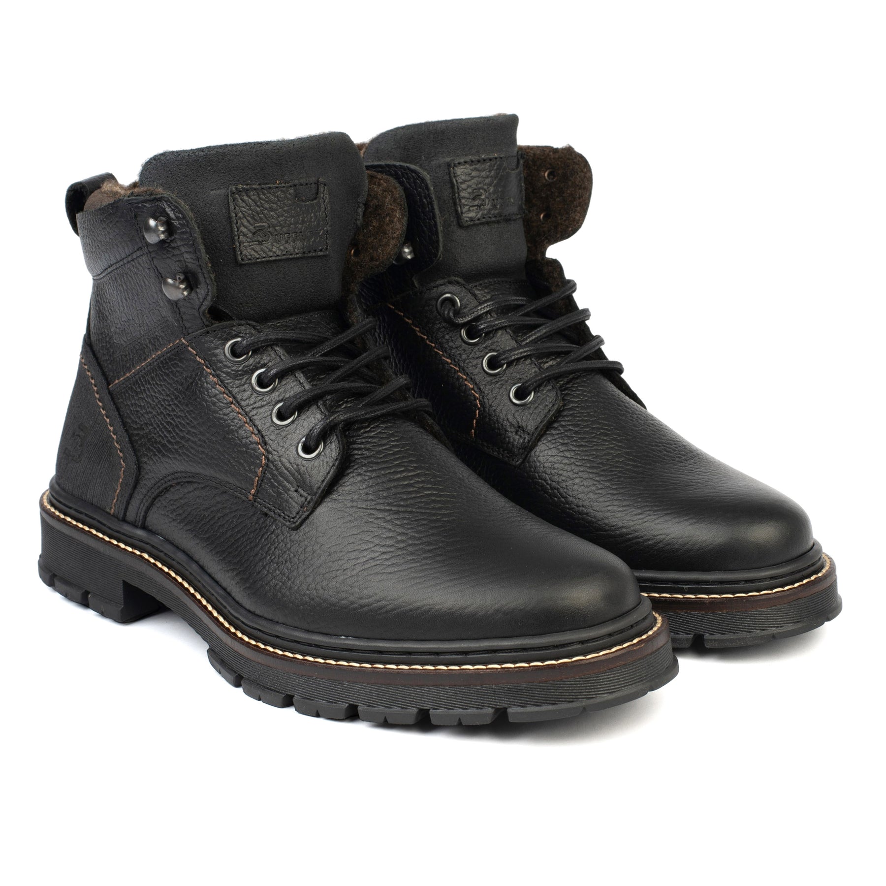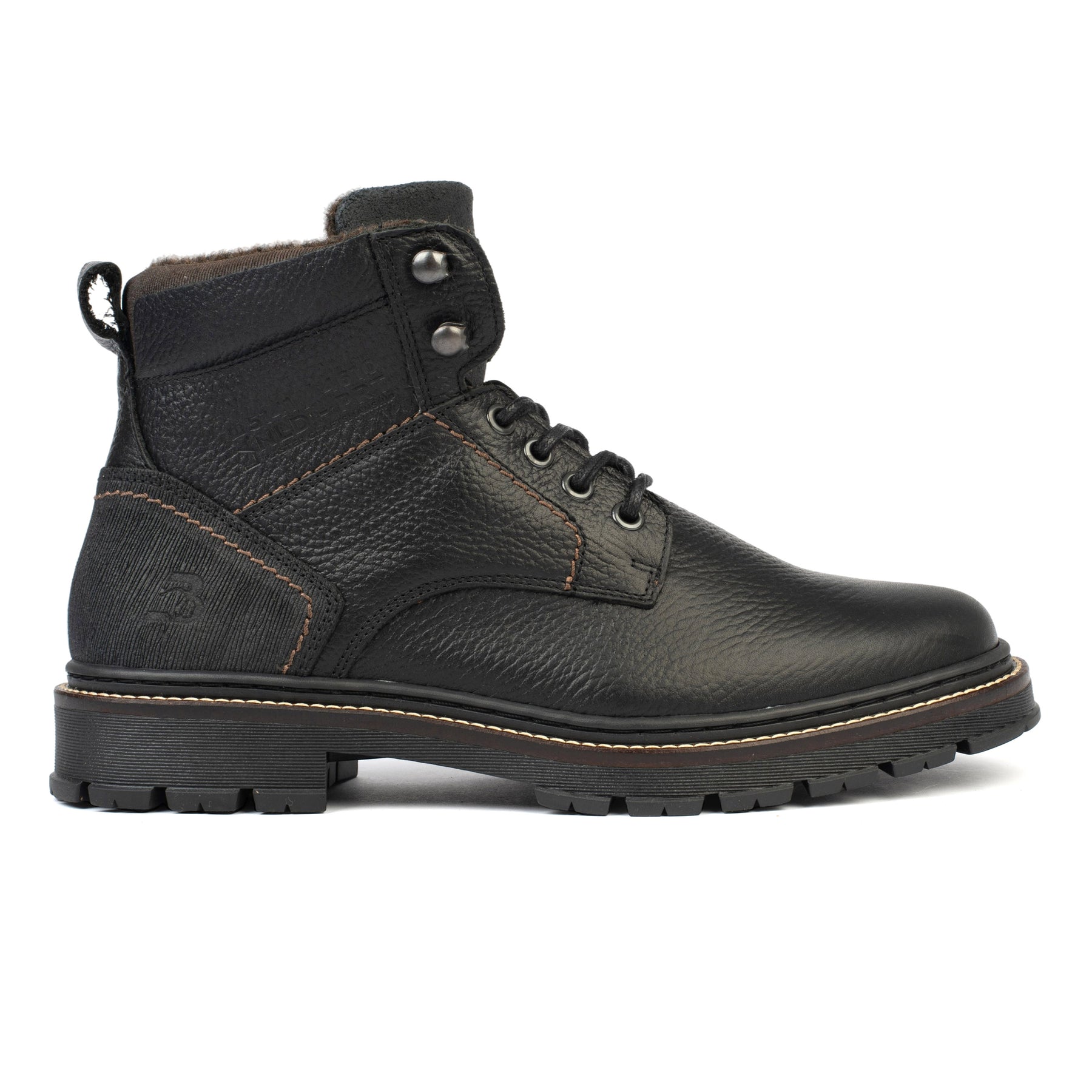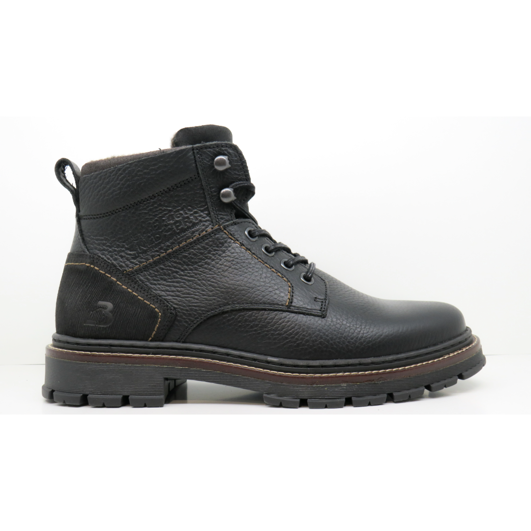A Pirineus boot fekete természetes bőrből egy alkalmi férfi bakancs, amelyet a hideg évszak kényelmére, tartósságára és stílusára terveztek. A robusztus design és a fekete szín sokoldalú megjelenést biztosít, könnyen beilleszthető az alkalmi vagy városi öltözékekbe.