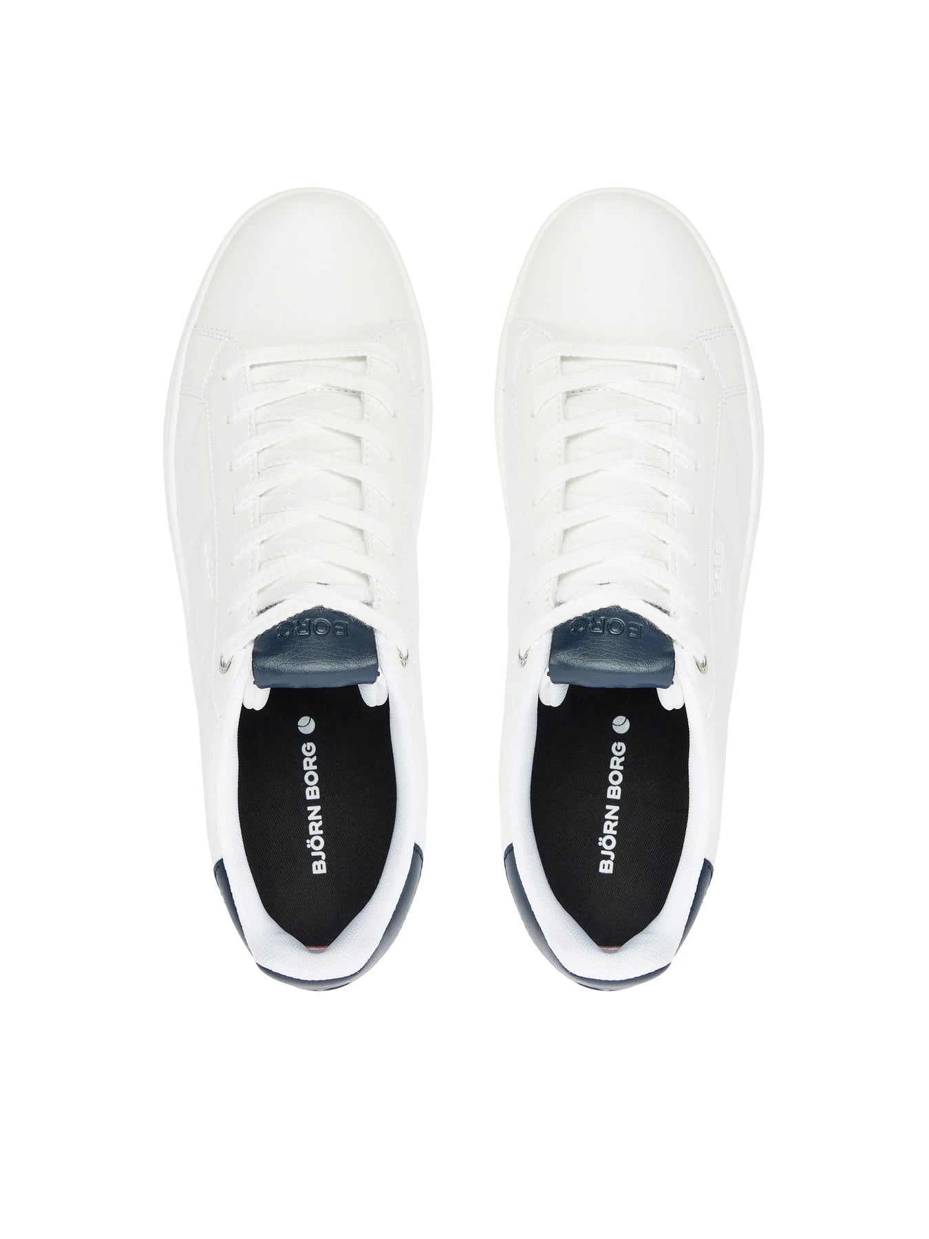 A T450 fehér-sötétkék sneaker egy modern modell, letisztult és sokoldalú alkalmi stílushoz tervezve. Ökológiai bőrből készült, minimalista designjával és kiegyensúlyozott színkombinációjával tűnik ki, amely mindennapi használatra alkalmas.
