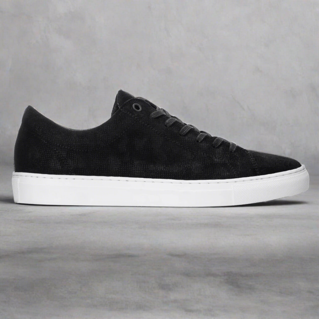 A VELO SNEAKER ECO Camo Black Embossed Leather cipő egy kiváló minőségű bőrből készült sportcipő modell, diszkrét Geo-camo mintával, amely a digitális földrajz ihlette, hőre lágyuló gumitalppal.