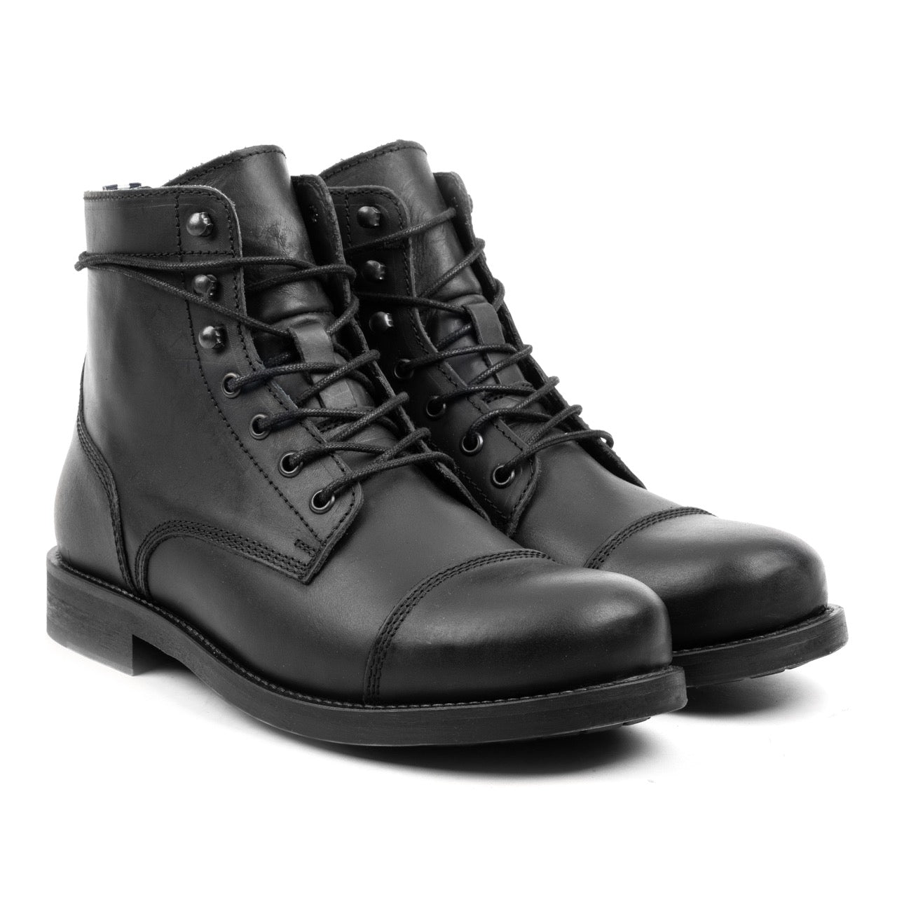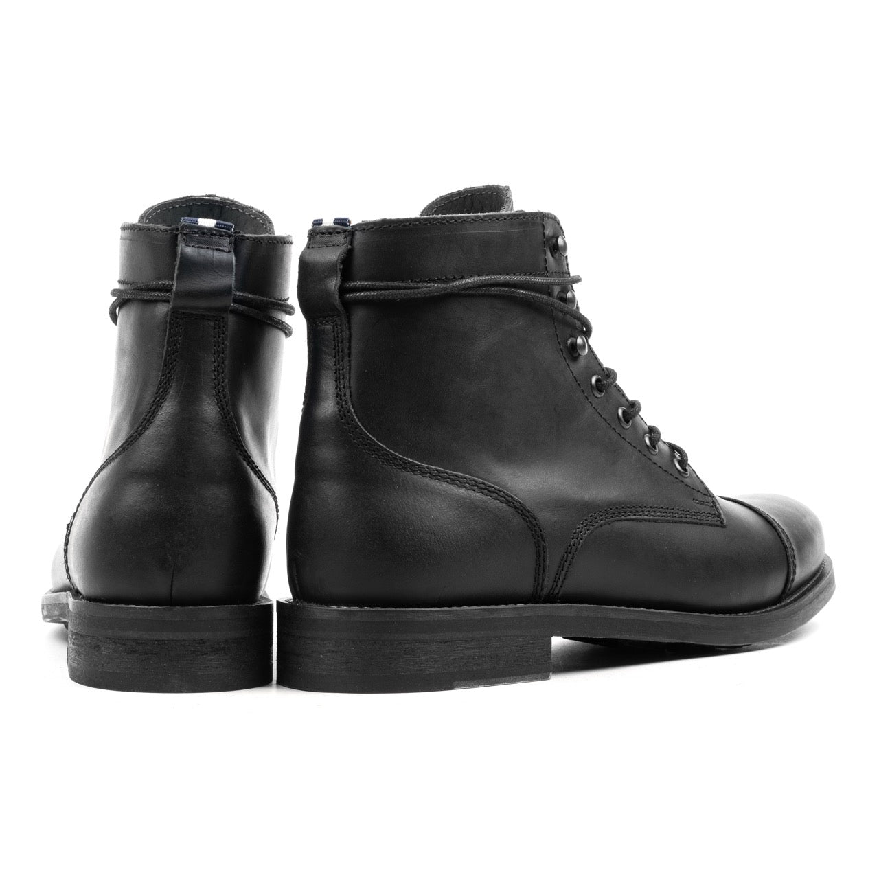 BERET TOE CAP BOOT Black Waxy Leather