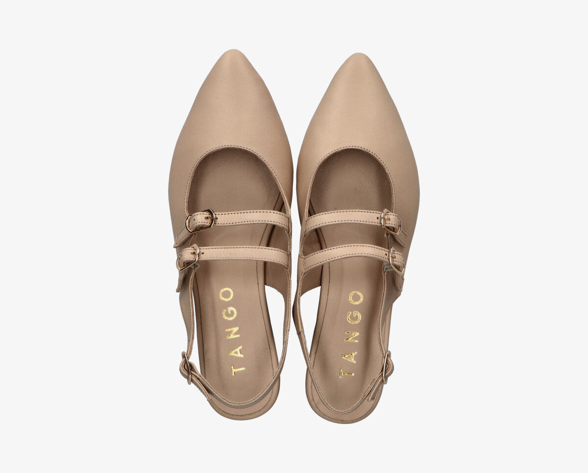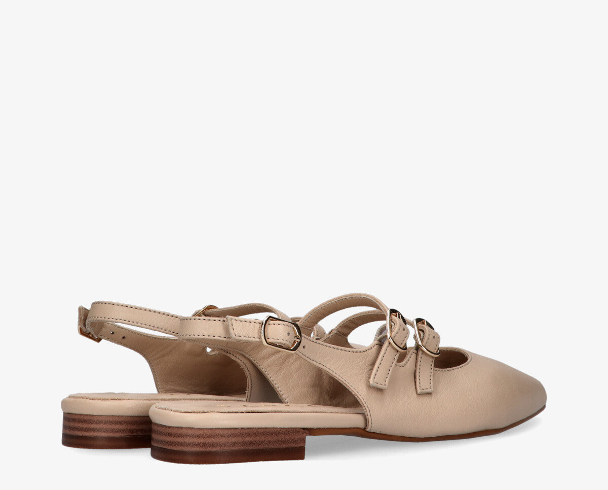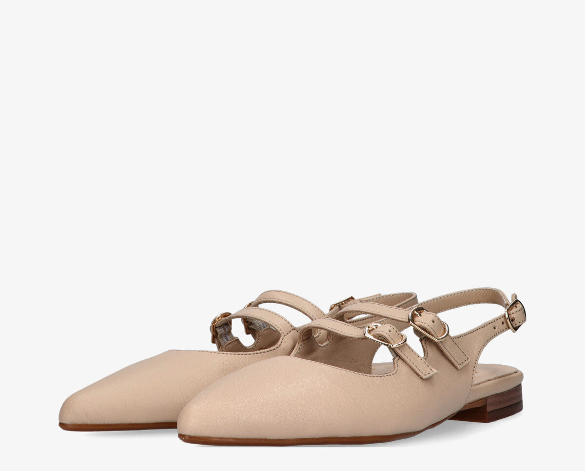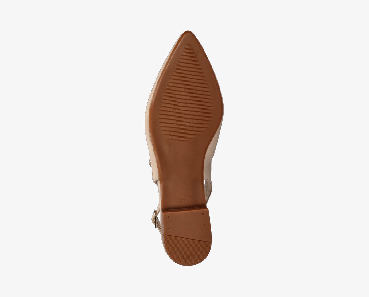 Puha és rugalmas bőrből készült, ez a modell kellemes illeszkedést és kényelmet biztosít egész nap. A slingback dizájn, a hátsó pánttal stabilitást és tartást nyújt, míg a minimalista vonalak kiemelik a modell eleganciáját.