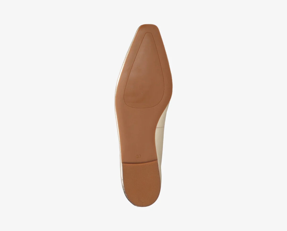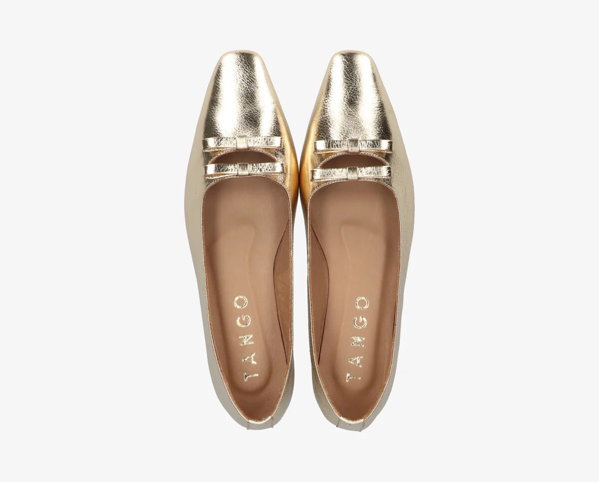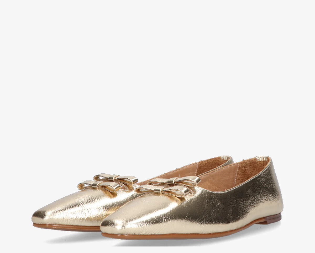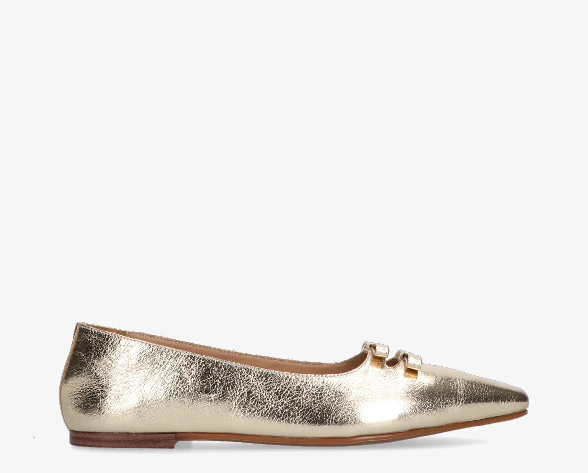 A Rea masni egy elegáns balerina cipő, amelyet úgy terveztek, hogy tökéletes egyensúlyt biztosítson a stílus és a kényelem között. Nőiességet sugárzó dizájnja, arany színű felülete és diszkrét díszítő eleme kifinomult választássá teszi ezt a modellt bármilyen alkalomra.