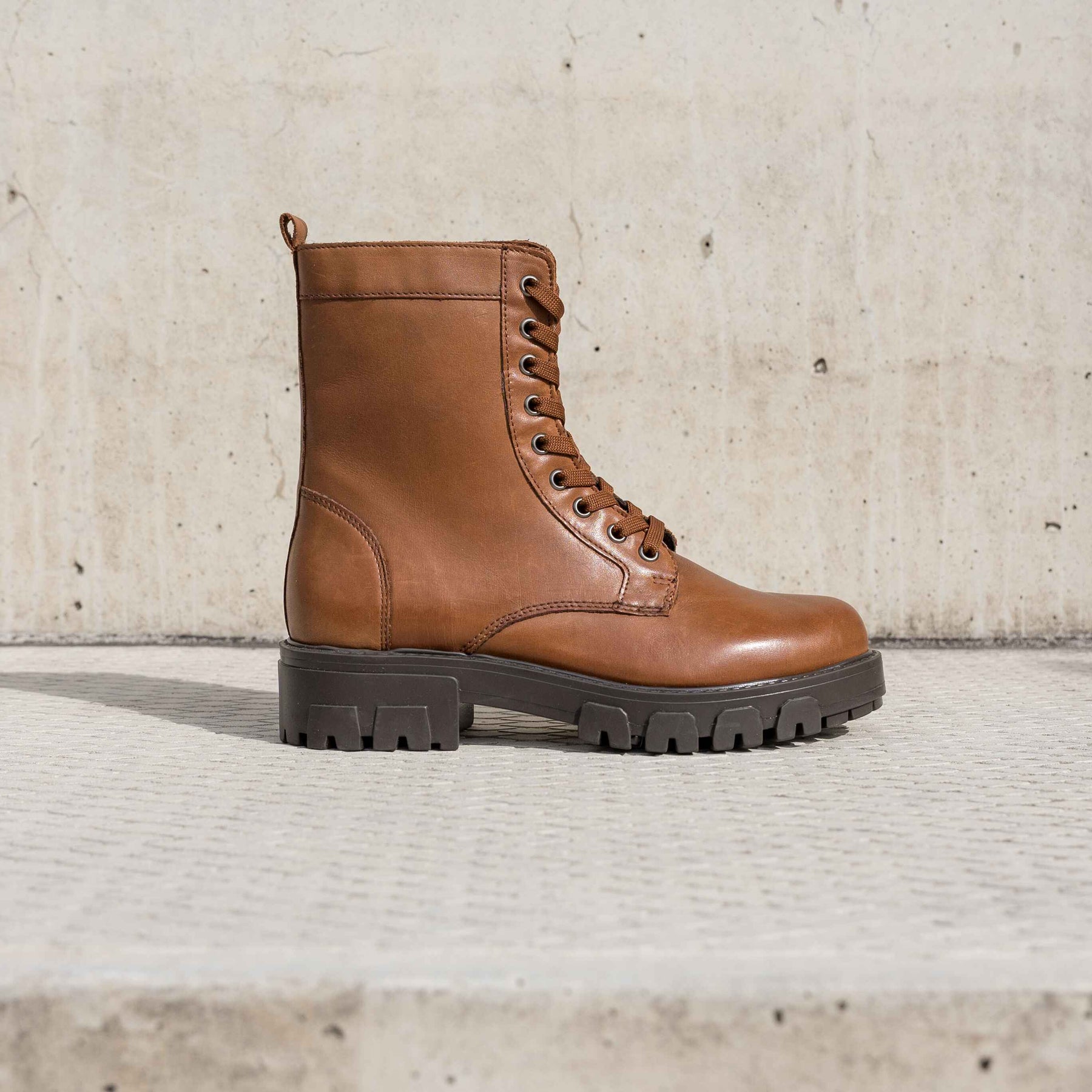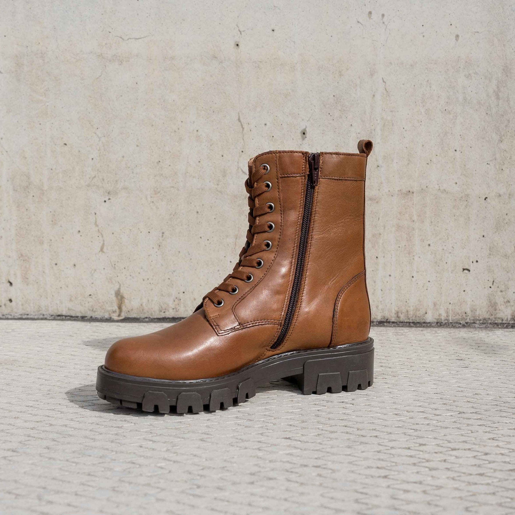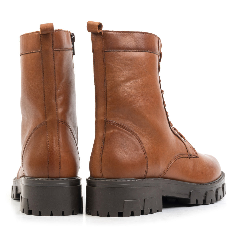 Aria fűzős csizma, konyak