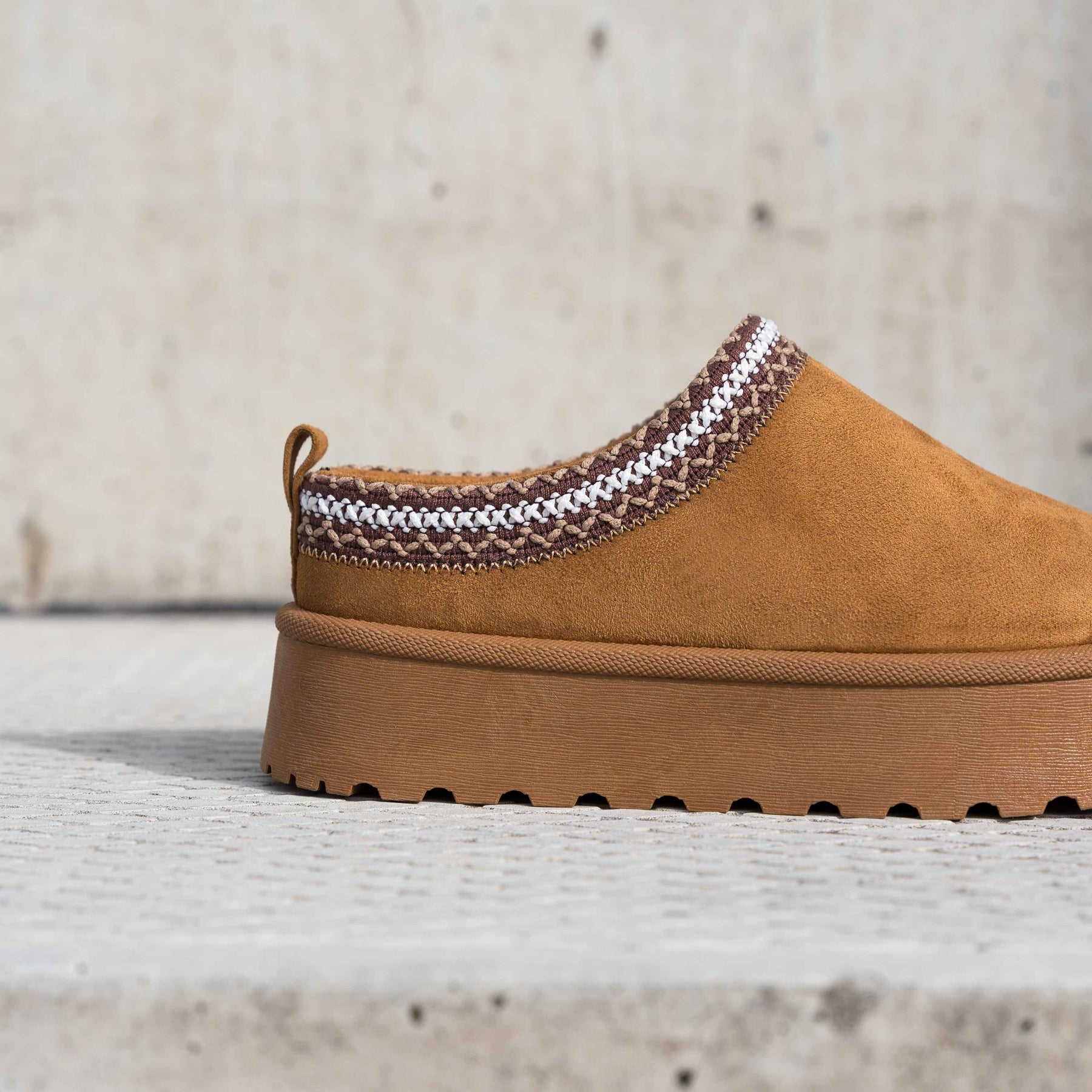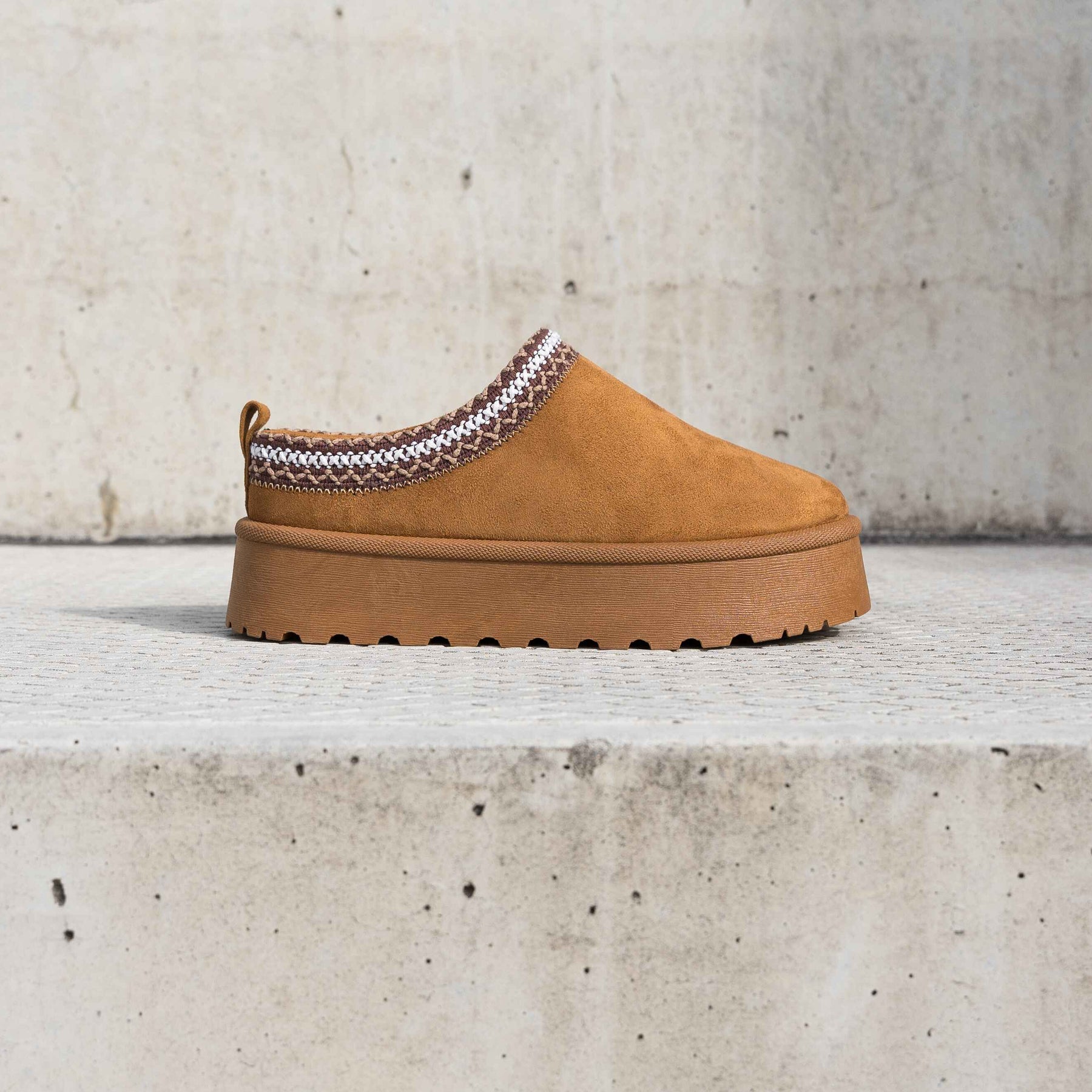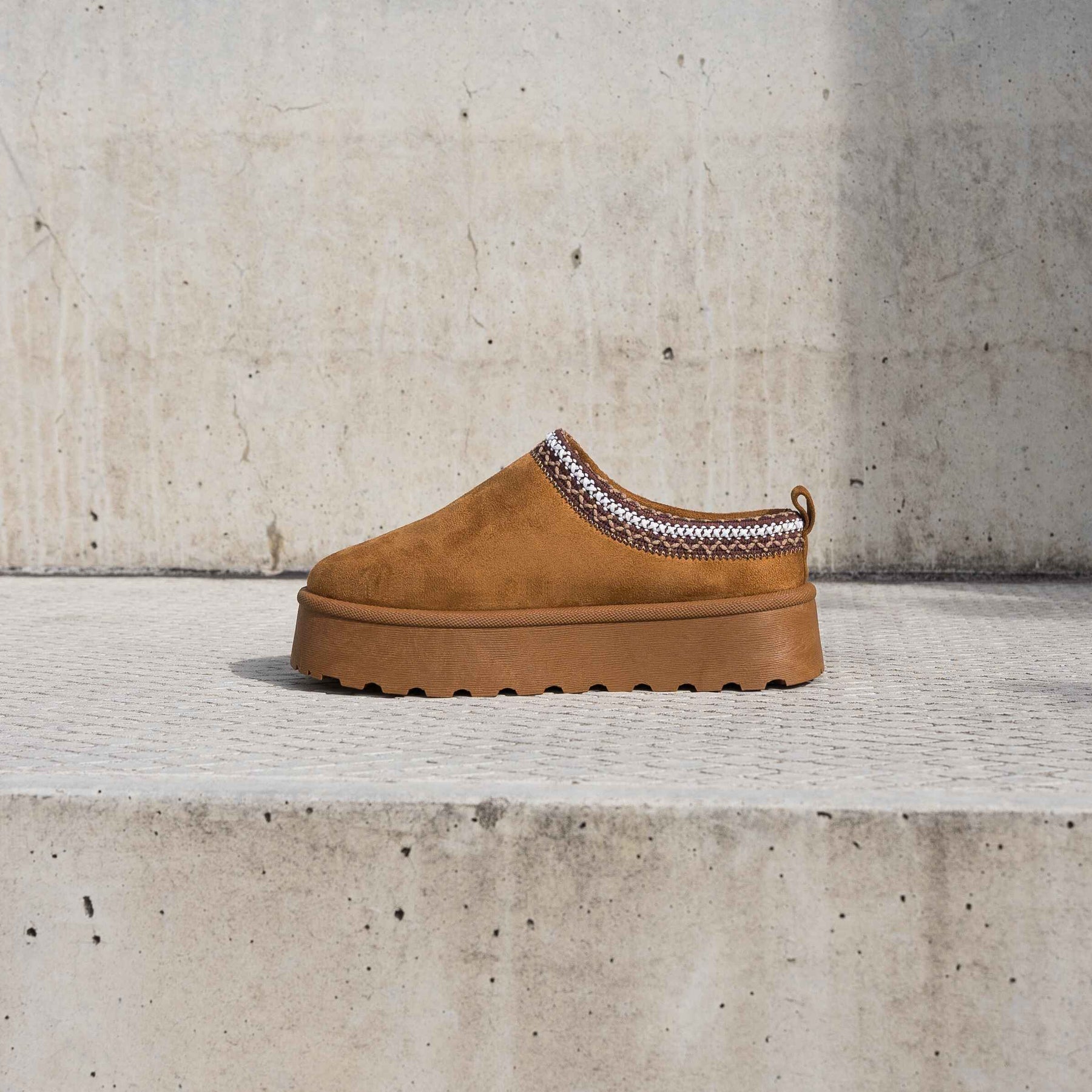 A szintetikus velúrból készült külső kellemes textúrát és stílusos megjelenést biztosít. A szintetikus szőrmével bélelt belső termikus kényelmet és kellemes viselési érzetet nyújt.