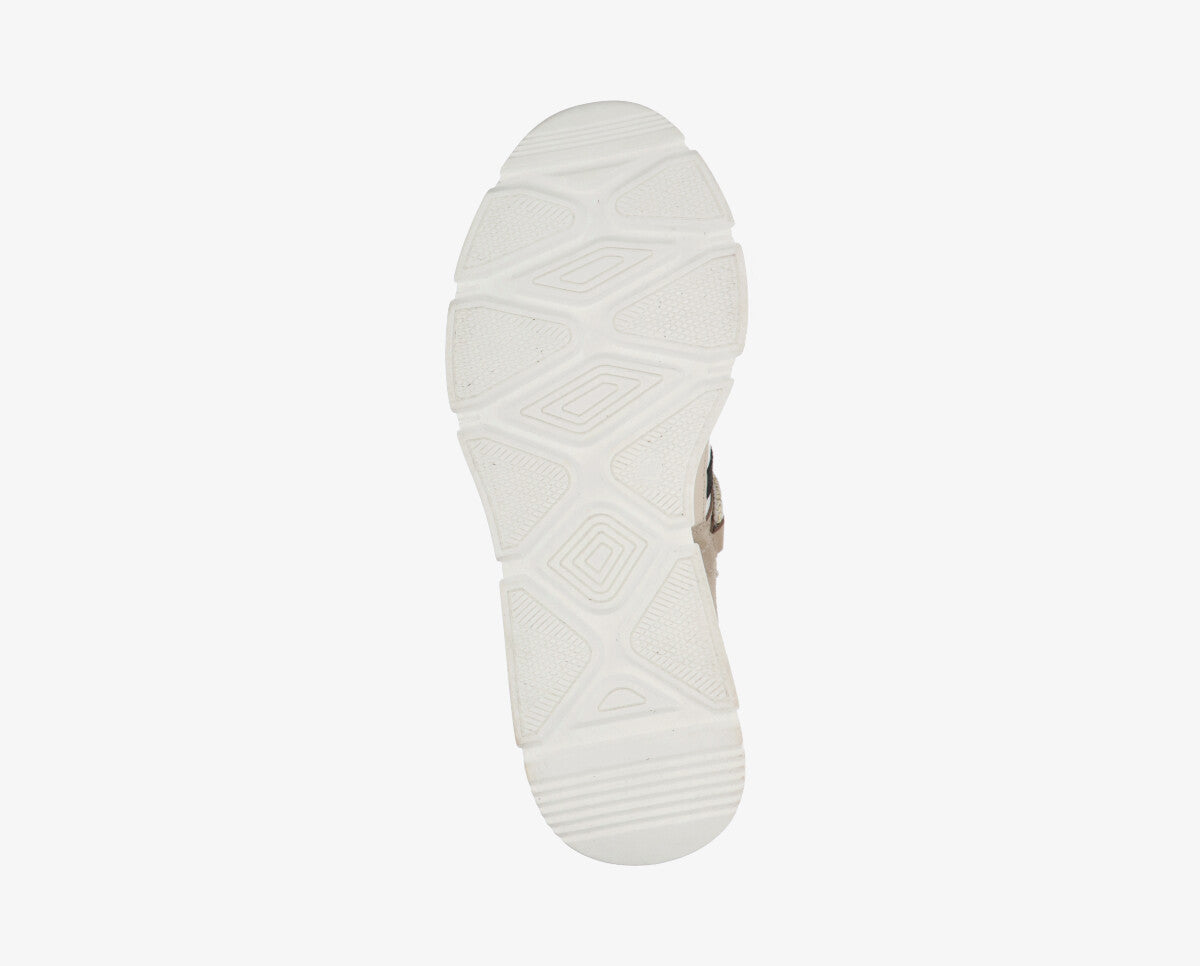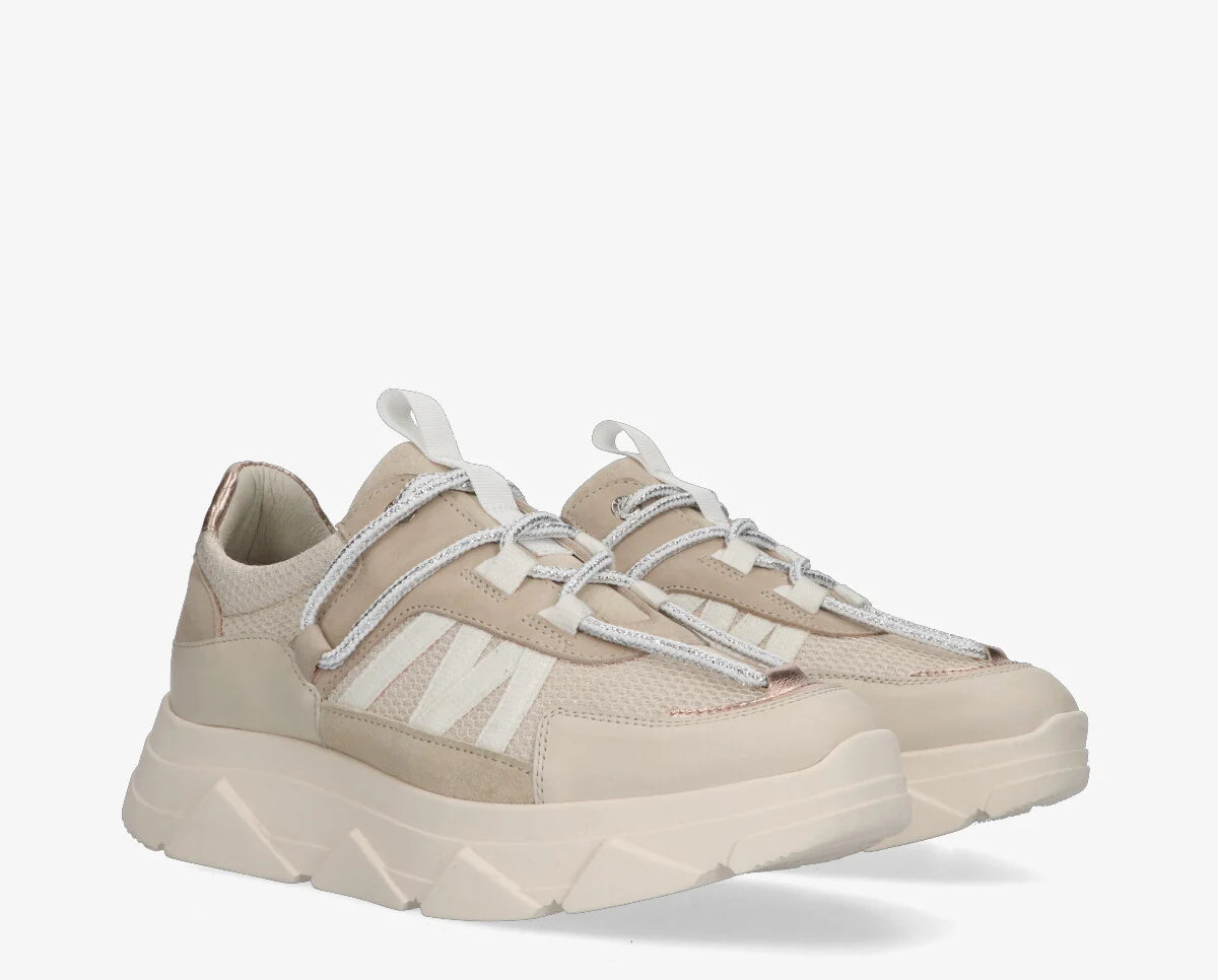 Az ekrü árnyalatok és az ezüstös díszítések kombinációja extra stílust kölcsönöz, így ez a modell könnyen beilleszthető a hétköznapi vagy sportos-elegáns összeállításokba.
