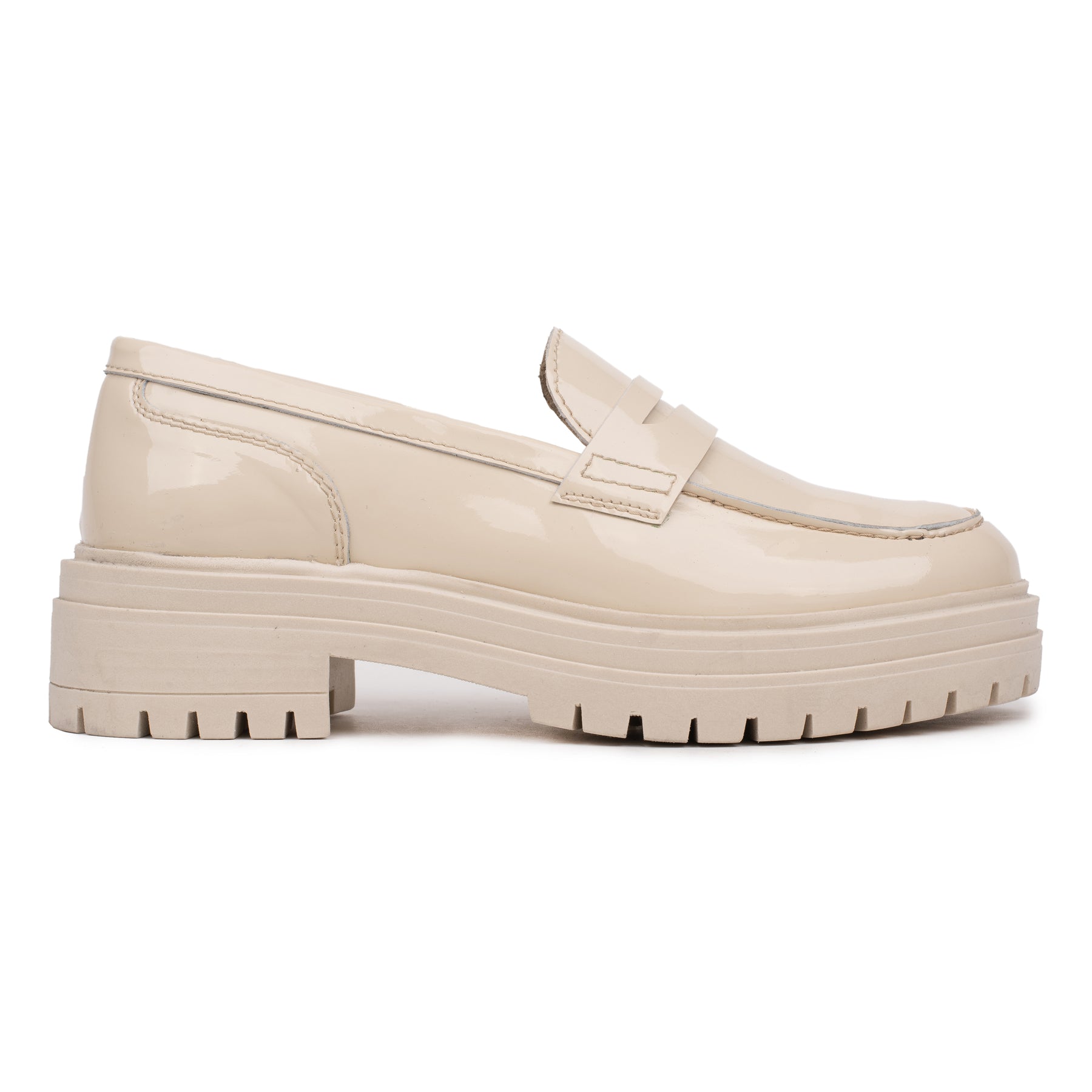 A Leyton Loafer egy divatos, alkalmi mokaszin női cipő az Omnio Ateliertől, kiváló minőségű bézs színű lakkbőrből készült. A kényelmes talpbetét puha bőrből készült, a talpprofil masszív, kifejezetten ehhez a típusú cipőhöz igazodik, a talp anyaga pedig hőre lágyuló gumi (TPR), amely rugalmas, de ellenálló anyag.