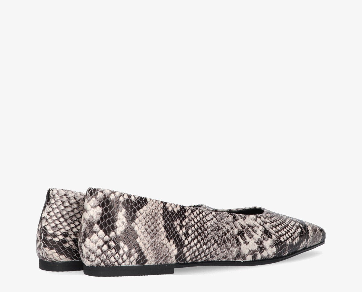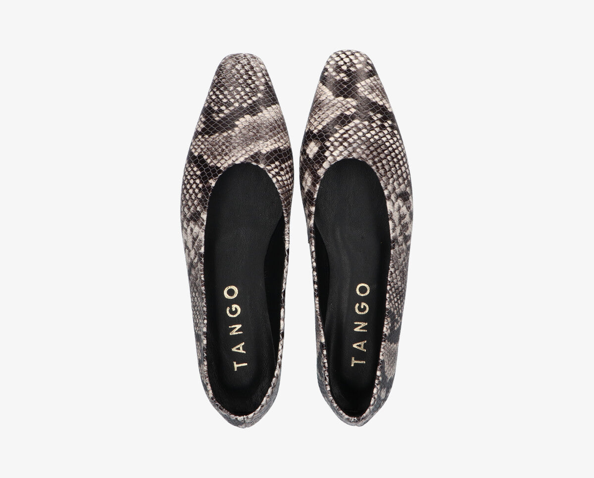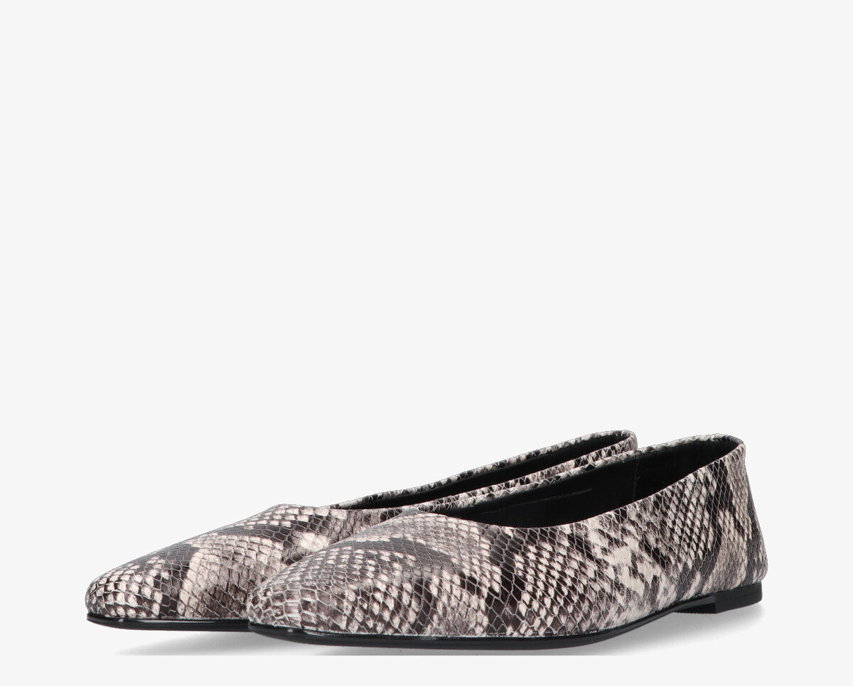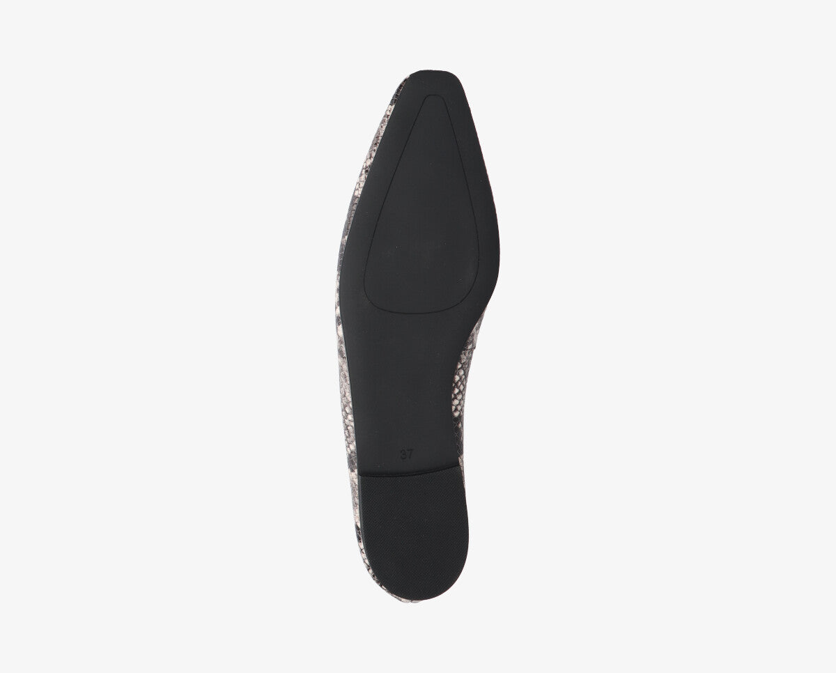 A Rea balerina ideális választás azoknak a nőknek, akik az elegancia és a kényelem kiegyensúlyozott keverékére vágynak. A kifinomult design, amelyet a piton mintás nyomtatás egészít ki, extra stílust és személyiséget kölcsönöz bármilyen öltözéknek.