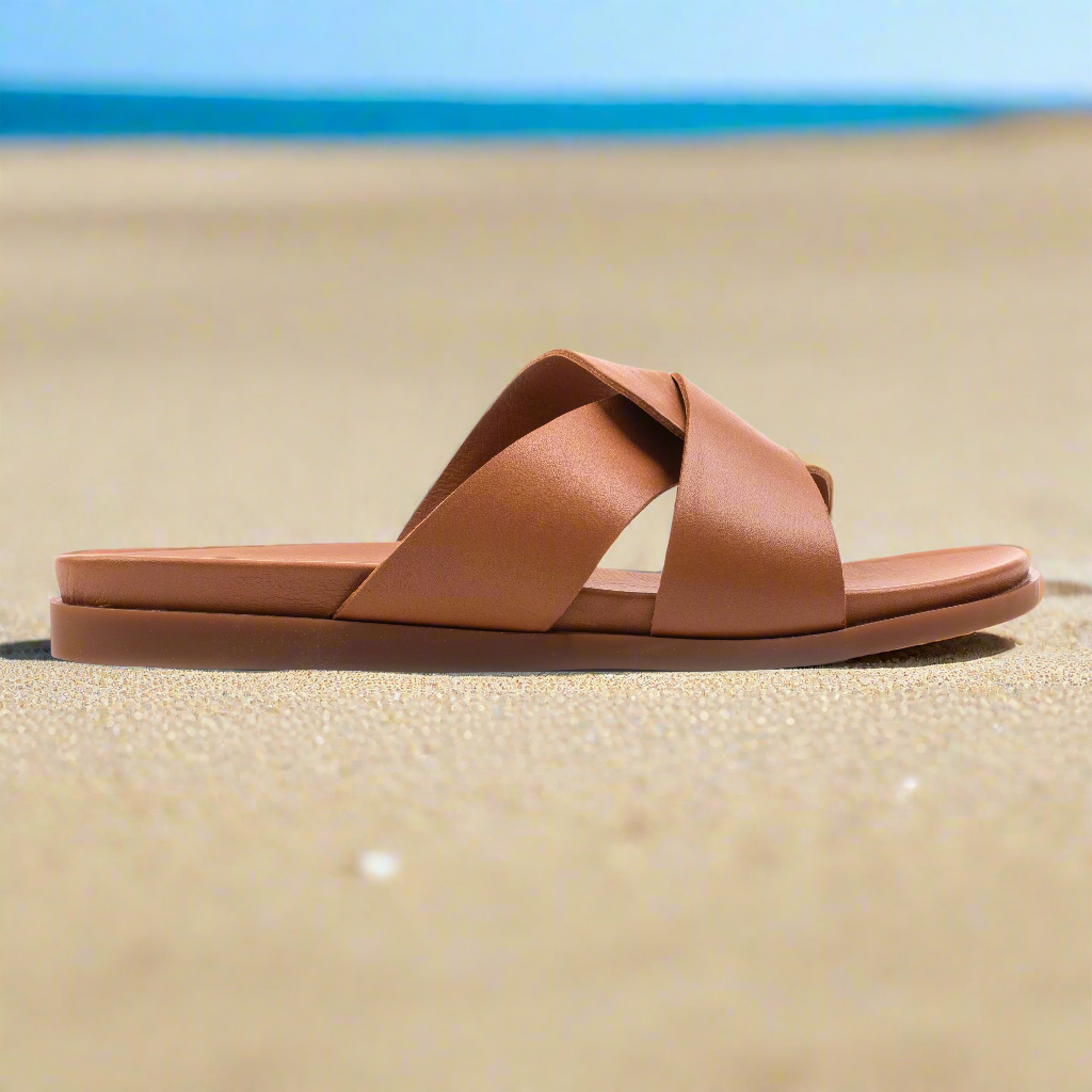 SANDAL SLIPPER WOMEN 402 egy modern és sokoldalú modell, ideális a meleg nyári napokra. A minimalista design, széles keresztpántokkal, elegáns és laza megjelenést kölcsönöz, alkalmas casual vagy smart-casual viselethez.