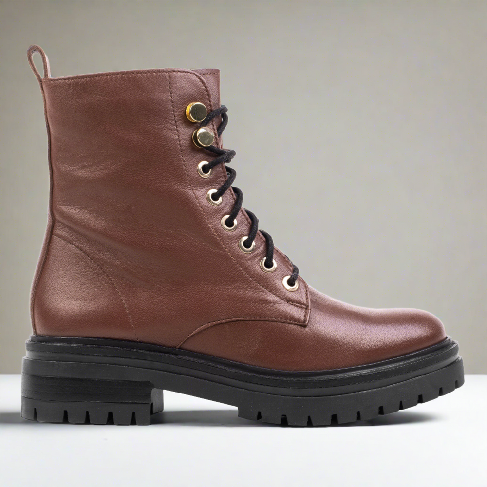 BIKER LADIES LACE UP BOOT Chocolate Leather